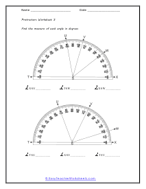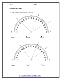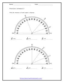 Students find the measurements of the angles using the protractor. Ten problems are provided.