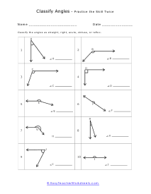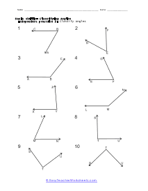 Students will classify each angle based on its measurement . Ten problems are provided.